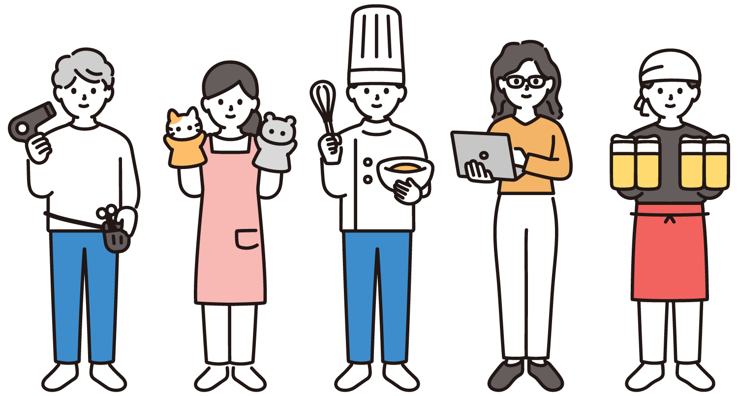 応援します当事務所は、ご家族経営などの小さな会社や個人事業主、フリーランスなど、小規模事業者の皆さまの日常の経理業務から決算申告まで全力で応援いたします。
